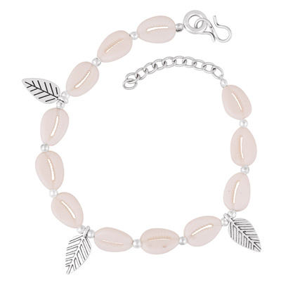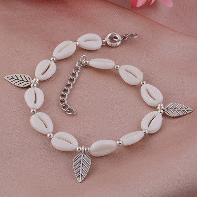 Home | Fashion Ankletes | German Silver Plain Anklets | Gorgeous Textured Leaf With Shell German Silver Anklets