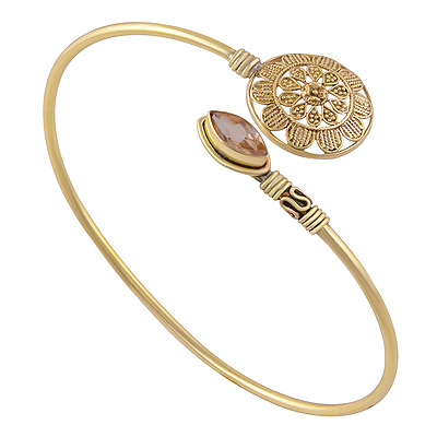 Home | Fashion Bangles | Brass Cut Stone Bangles | Gorgeous Rawa Work Flower Pattern Around Citrine Marquise Shape Solid Brass Bangles