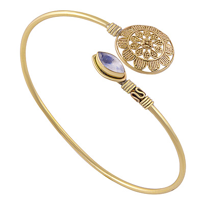 Home | Fashion Bangles | Brass Cut Stone Bangles | Gorgeous Rawa Work Flower Pattern Around Rainbow Moonstone Marquise Shape Solid Brass Bangles