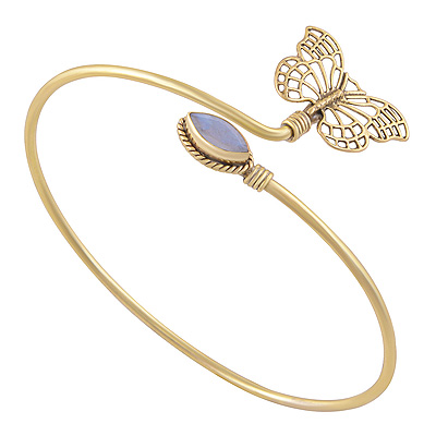 Home | Fashion Bangles | Brass Cut Stone Bangles | Alluring Butterfly Design Pattern Around Rainbow Moonstone Marquise Shape Solid Brass Bangles