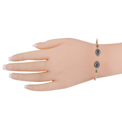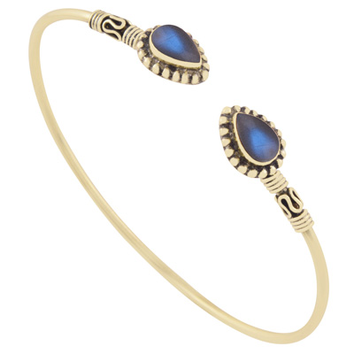 Home | Fashion Bangles | Brass Gemstone Bangles | Beautiful Wire & Rawa Work Around Labradorite Pear Shape Solid Brass Bangle