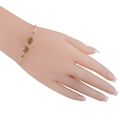 Home | Fashion Bangles | Brass Gemstone Bangles | Beautifully Handcrafted Wire Work Around Tiger's Eye Oval Shape Solid Brass Bangle
