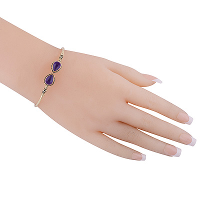 Home | Fashion Bangles | Brass Gemstone Bangles | Gorgeous Twisted Wire Work Around Amethyst Pear Shape Solid Brass Bangle