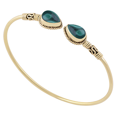 Home | Fashion Bangles | Brass Gemstone Bangles | Gorgeous Twisted Wire Work Around Malachite Pear Shape Solid Brass Bangle