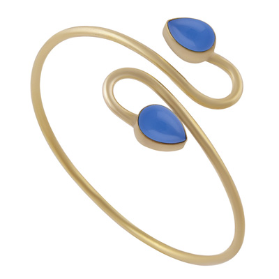 Home | Fashion Bangles | Brass Gemstone Bangles | Alluring Two Stone Pattern Blue Chalcedony Pear Shape Solid Brass Bangle