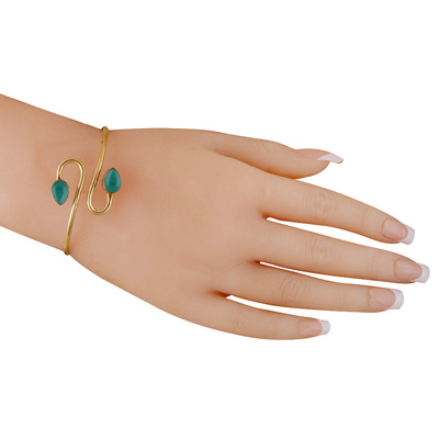 Home | Fashion Bangles | Brass Gemstone Bangles | Alluring Two Stone Pattern Green Onyx Pear Shape Solid Brass Bangle