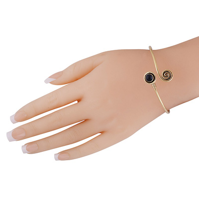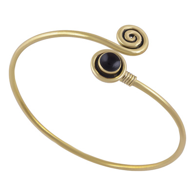Home | Fashion Bangles | Brass Gemstone Bangles | Gorgeous Plain Wire Around Black Onyx Round Shape Solid Brass Bangle