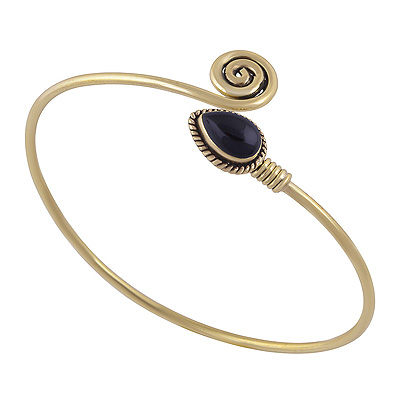 Home | Fashion Bangles | Brass Gemstone Bangles | Beautiful Twisted Wire Work Around Black Onyx Pear Shape Solid Brass Bangle