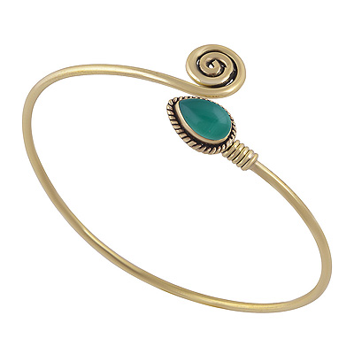 Home | Fashion Bangles | Brass Gemstone Bangles | Beautiful Twisted Wire Work Around Green Onyx Pear Shape Solid Brass Bangle