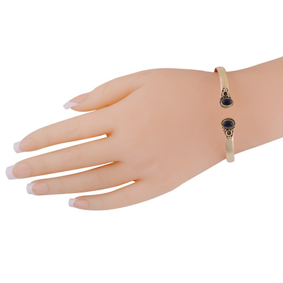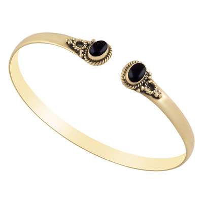 Home | Fashion Bangles | Brass Gemstone Bangles | Gorgeous Handcrafted Rawa And Wire Work Around Black Onyx Oval Shape Solid Brass Bangle