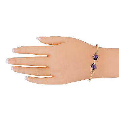 Home | Fashion Bangles | Brass Gemstone Bangles | Beautiful Wire & Rawa Work Around Amethyst Oval Shape Solid Brass Bangle