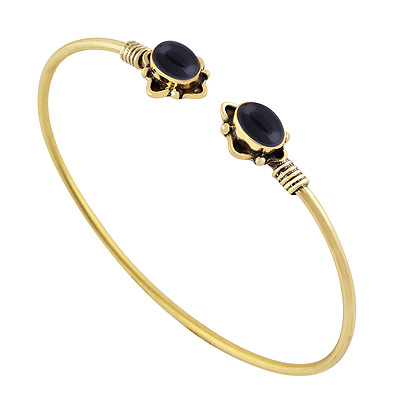 Home | Fashion Bangles | Brass Gemstone Bangles | Beautiful Wire & Rawa Work Around Black Onyx Oval Shape Solid Brass Bangle