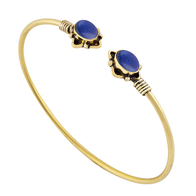 Home | Fashion Bangles | Brass Gemstone Bangles | Beautiful Wire & Rawa Work Around Lapis Oval Shape Solid Brass Bangle