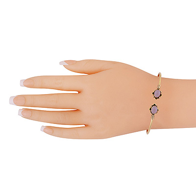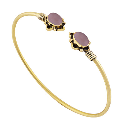 Home | Fashion Bangles | Brass Gemstone Bangles | Beautiful Wire & Rawa Work Around Rose Quartz Oval Shape Solid Brass Bangle