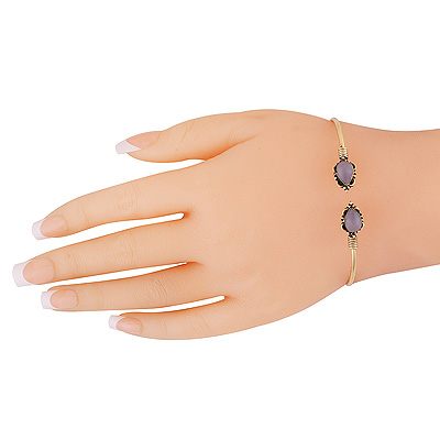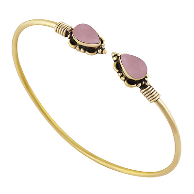 Home | Fashion Bangles | Brass Gemstone Bangles | Magnificent Wire Work Around Rose Quartz Pear Shape Solid Brass Bangle