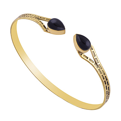 Home | Fashion Bangles | Brass Gemstone Bangles | Gorgeous Texture Work Around Black Onyx Pear Shape Solid Brass Bangle