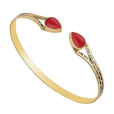 Home | Fashion Bangles | Brass Gemstone Bangles | Gorgeous Texture Work Around Coral Pear Shape Solid Brass Bangle