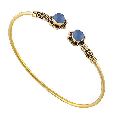 Home | Fashion Bangles | Brass Gemstone Bangles | Magnificent Wire Work Around Blue Chalcedony Round Shape Solid Brass Bangle
