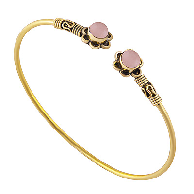 Home | Fashion Bangles | Brass Gemstone Bangles | Magnificent Wire Work Around Rose Quartz Round Shape Solid Brass Bangle
