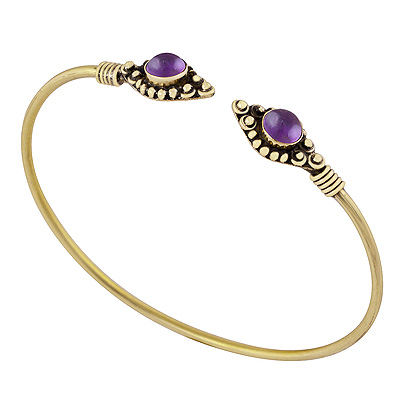 Home | Fashion Bangles | Brass Gemstone Bangles | Beautiful Wire & Rawa Work Around Amethyst Round Shape Solid Brass Bangle
