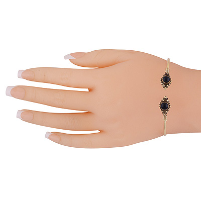Home | Fashion Bangles | Brass Gemstone Bangles | Beautiful Wire & Rawa Work Around Black Onyx Round Shape Solid Brass Bangle