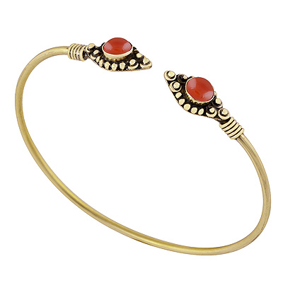 Home | Fashion Bangles | Brass Gemstone Bangles | Beautiful Wire & Rawa Work Around Carnelian Round Shape Solid Brass Bangle