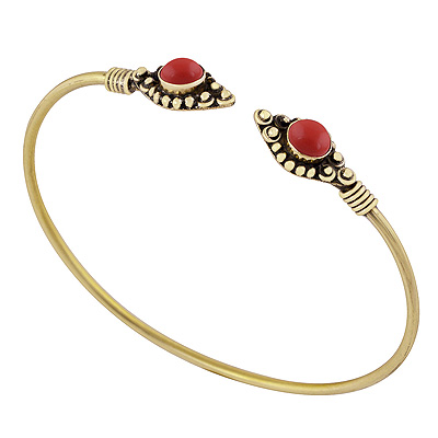 Home | Fashion Bangles | Brass Gemstone Bangles | Beautiful Wire & Rawa Work Around Coral Round Shape Solid Brass Bangle