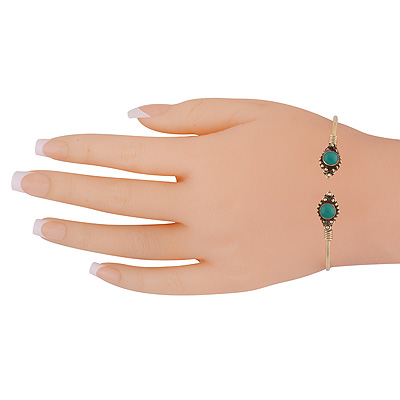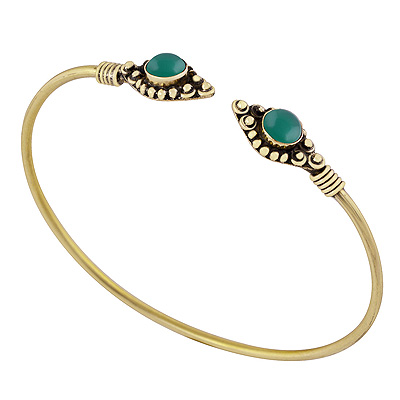 Home | Fashion Bangles | Brass Gemstone Bangles | Beautiful Wire & Rawa Work Around Green Onyx Round Shape Solid Brass Bangle