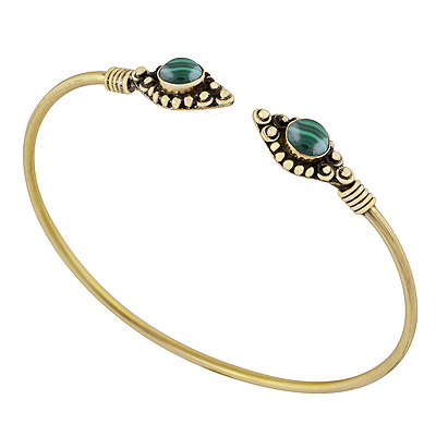 Home | Fashion Bangles | Brass Gemstone Bangles | Beautiful Wire & Rawa Work Around Malachite Round Shape Solid Brass Bangle