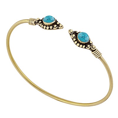 Home | Fashion Bangles | Brass Gemstone Bangles | Beautiful Wire & Rawa Work Around Turquoise Round Shape Solid Brass Bangle