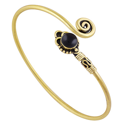 Home | Fashion Bangles | Brass Gemstone Bangles | Stunning Wire & Rawa Work Around Black Onyx Round Shape Solid Brass Bangle