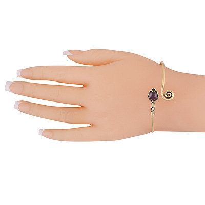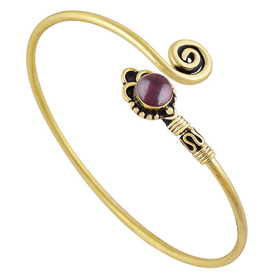 Home | Fashion Bangles | Brass Gemstone Bangles | Stunning Wire & Rawa Work Around Garnet Round Shape Solid Brass Bangle