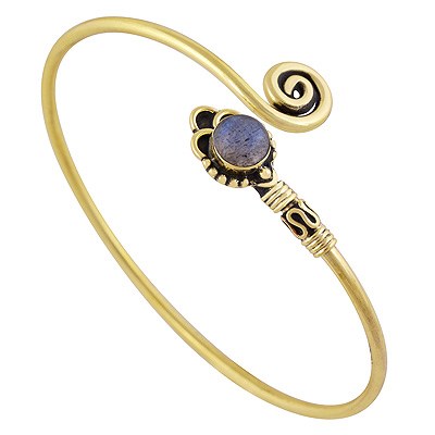 Home | Fashion Bangles | Brass Gemstone Bangles | Stunning Wire & Rawa Work Around Labradorite Round Shape Solid Brass Bangle