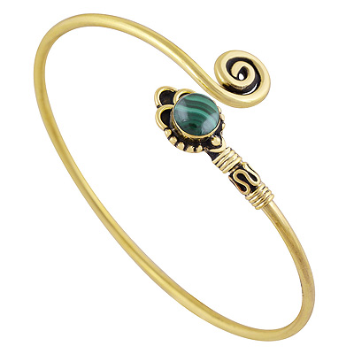 Home | Fashion Bangles | Brass Gemstone Bangles | Stunning Wire & Rawa Work Around Malachite Round Shape Solid Brass Bangle