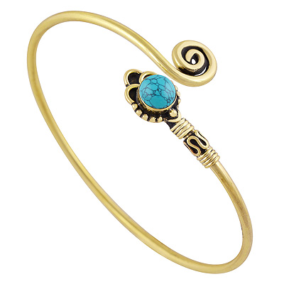 Home | Fashion Bangles | Brass Gemstone Bangles | Stunning Wire & Rawa Work Around Turquoise Round Shape Solid Brass Bangle
