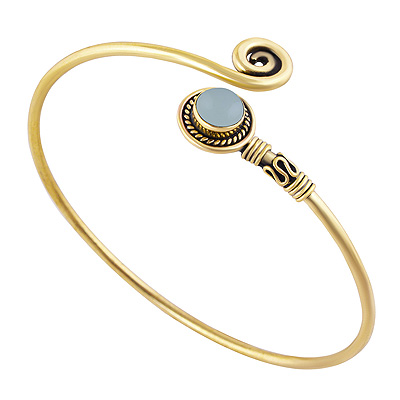 Home | Fashion Bangles | Brass Gemstone Bangles | Alluring Wire Work Around Aqua Chalcedony Round Shape Solid Brass Bangle