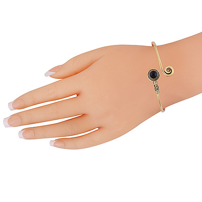 Home | Fashion Bangles | Brass Gemstone Bangles | Alluring Wire Work Around Black Onyx Round Shape Solid Brass Bangle