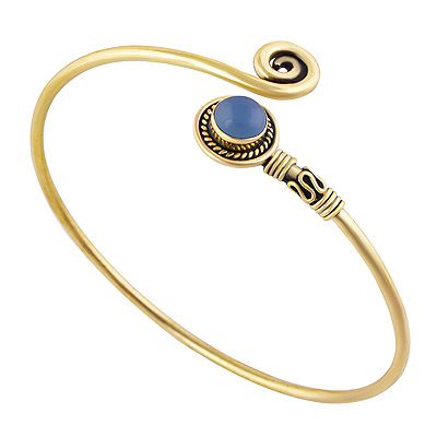 Home | Fashion Bangles | Brass Gemstone Bangles | Alluring Wire Work Around Blue Chalcedony Round Shape Solid Brass Bangle