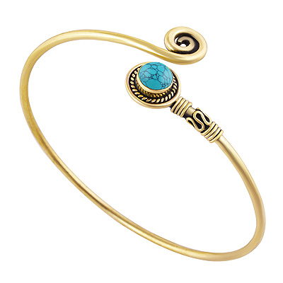Home | Fashion Bangles | Brass Gemstone Bangles | Alluring Wire Work Around Turquoise Round Shape Solid Brass Bangle