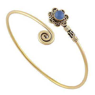 Home | Fashion Bangles | Brass Gemstone Bangles | Magnificent Wire Work Around Blue Chalcedony Round Shape Solid Brass Bangle