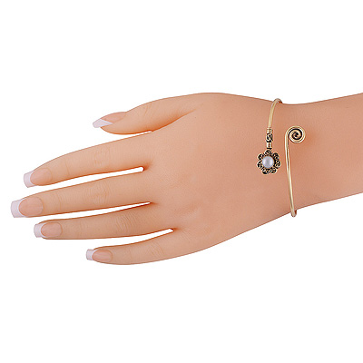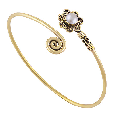Home | Fashion Bangles | Brass Gemstone Bangles | Magnificent Wire Work Around Pearl Round Shape Solid Brass Bangle
