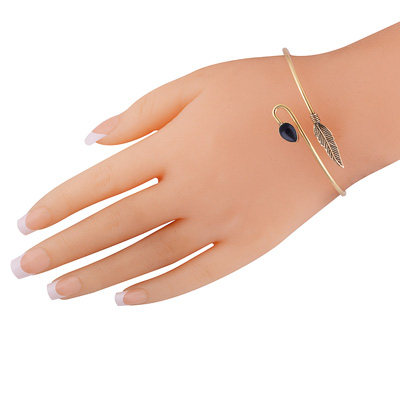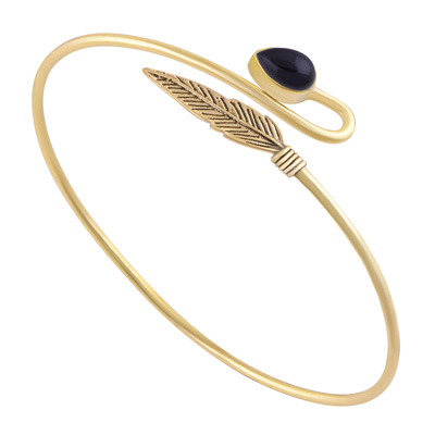 Home | Fashion Bangles | Brass Gemstone Bangles | Stunning Handcrafted Textured Leaf Adjustable Black Onyx Pear Shape Solid Brass Bangle