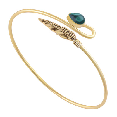 Home | Fashion Bangles | Brass Gemstone Bangles | Stunning Handcrafted Textured Leaf Adjustable Malachite Pear Shape Solid Brass Bangle