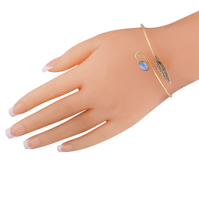 Home | Fashion Bangles | Brass Gemstone Bangles | Stunning Handcrafted Textured Leaf Adjustable Rainbow Moonstone Pear Shape Solid Brass Bangle