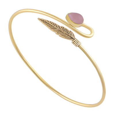 Home | Fashion Bangles | Brass Gemstone Bangles | Stunning Handcrafted Textured Leaf Adjustable Rose Quartz Pear Shape Solid Brass Bangle