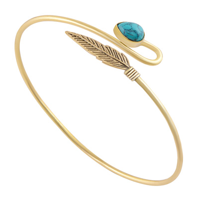 Home | Fashion Bangles | Brass Gemstone Bangles | Stunning Handcrafted Textured Leaf Adjustable Turquoise Pear Shape Solid Brass Bangle