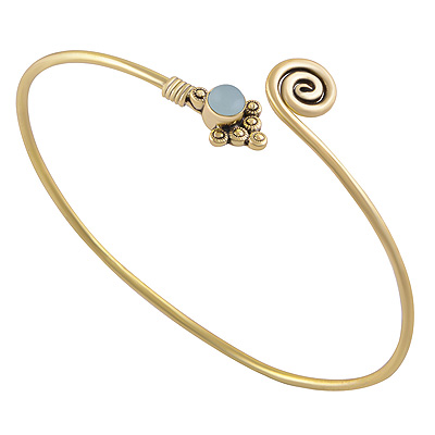 Home | Fashion Bangles | Brass Gemstone Bangles | Stunning Handwork Around Aqua Chalcedony Round Shape Solid Brass Bangle