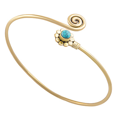 Home | Fashion Bangles | Brass Gemstone Bangles | Alluring Handcrafted Rawa Work Around Turquoise Round Shape Solid Brass Bangle