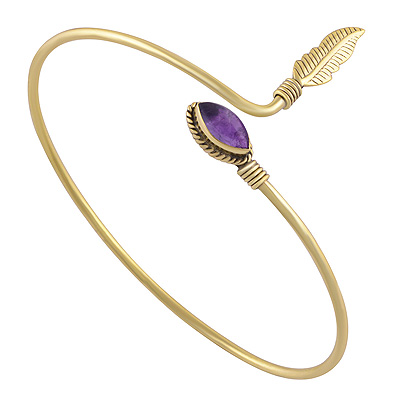 Home | Fashion Bangles | Brass Gemstone Bangles | Beautiful Handcrafted Leaf Amethyst Marquise Shape Solid Brass Bangle