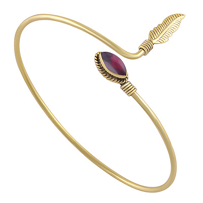 Home | Fashion Bangles | Brass Gemstone Bangles | Beautiful Handcrafted Leaf Garnet Marquise Shape Solid Brass Bangle